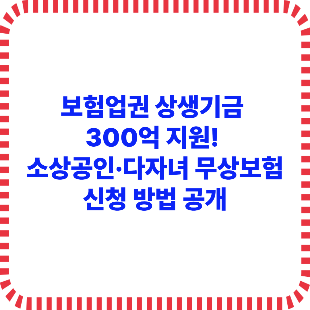 300억 원이 소상공인과 다자녀 가정에게 무상보험 혜택으로 본격 제공됩니다.