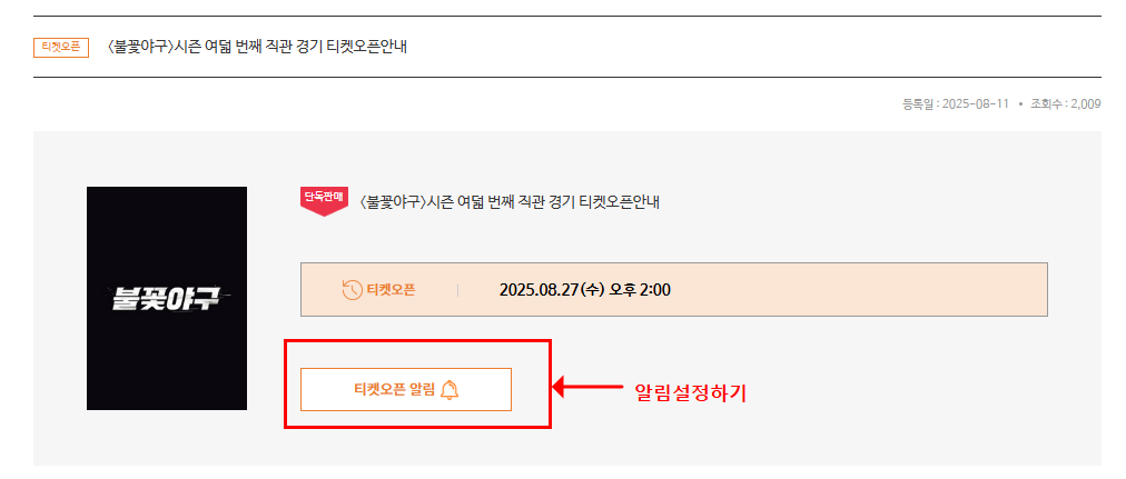 직관을 원한다면 8월 27일 티켓팅은 무조건 참여해야 합니다.