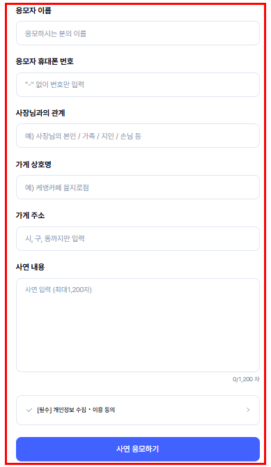 - 제출 정보 : 이름, 연락처, 사연 작성 → 클릭 한 번으로 응모 완료