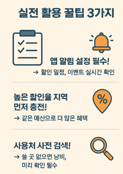 - 높은 할인율 지역 먼저 충전! → 같은 예산으로 더 많은 혜택