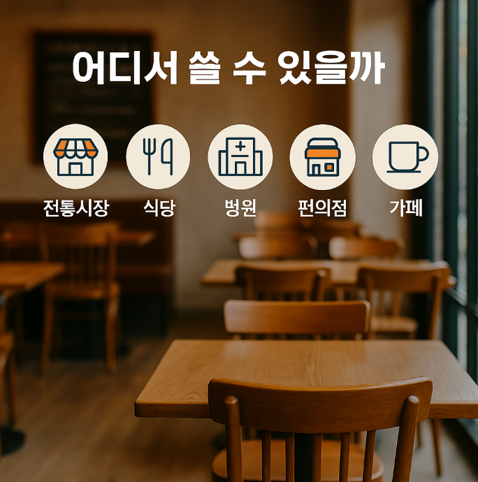 - 사용처: 전통시장, 식당, 학원, 병원, 편의점, 카페 등