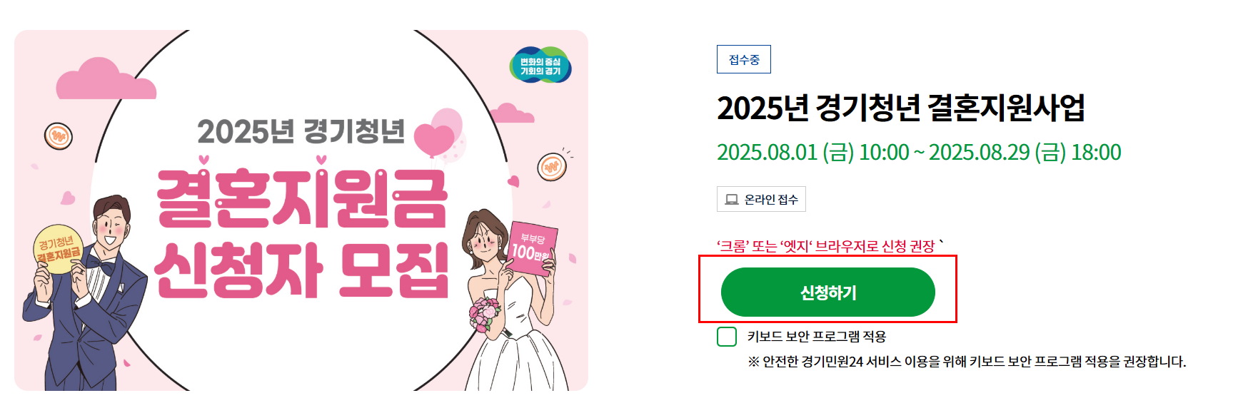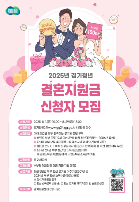2025년에도 경기 청년 결혼지원금 신청이 시작되었습니다.