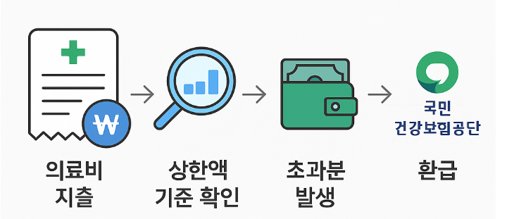 국민건강보험 가입자가 1년간 병·의원, 약국 등에서 본인부담금으로 지출한 금액이 소득수준에 따라 정해진 상한액을 초과하면, 그 초과분을 국민건강보험공단이 환급해주는 제도입니다.